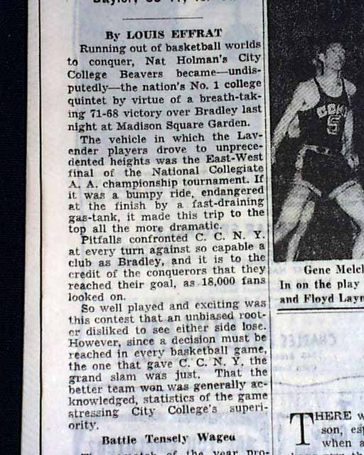 * CCNY becomes only teams in history to win the NIT and NCAA Tournament