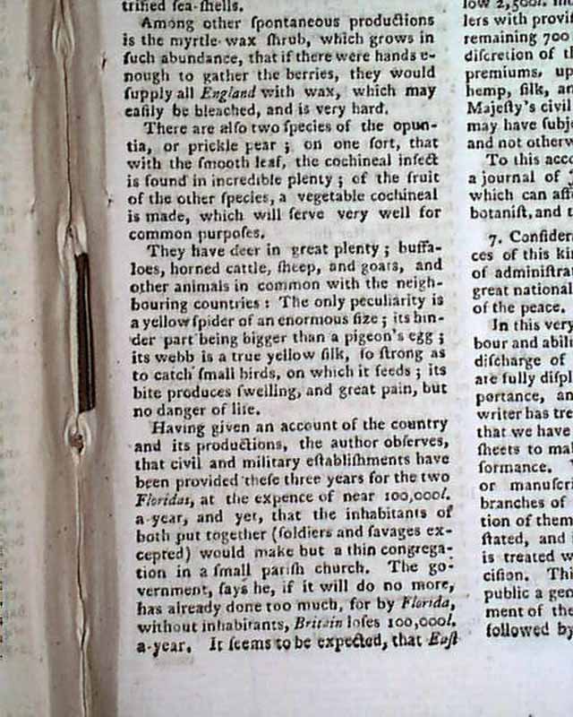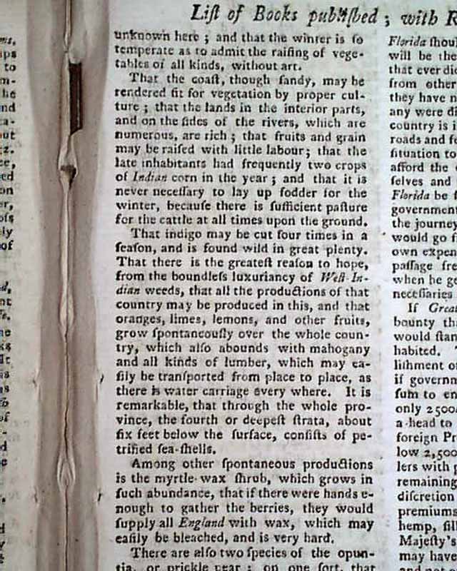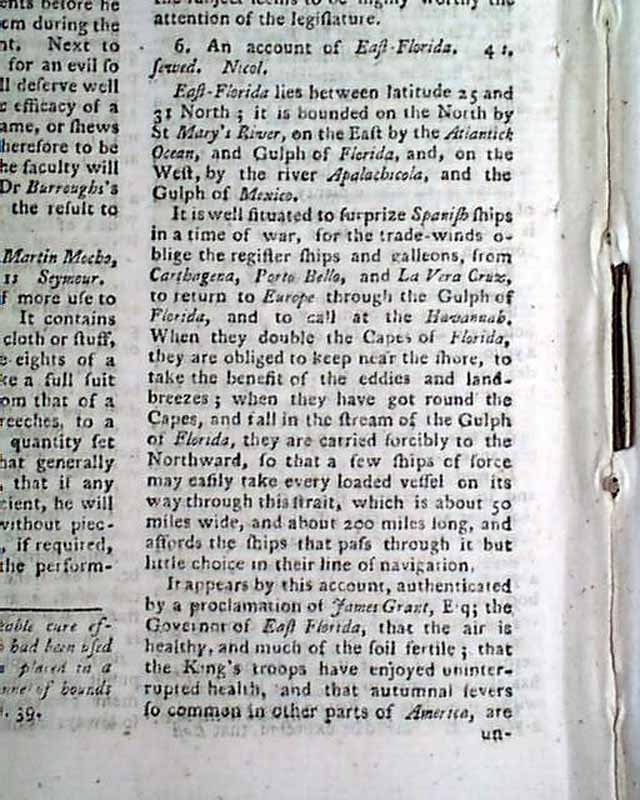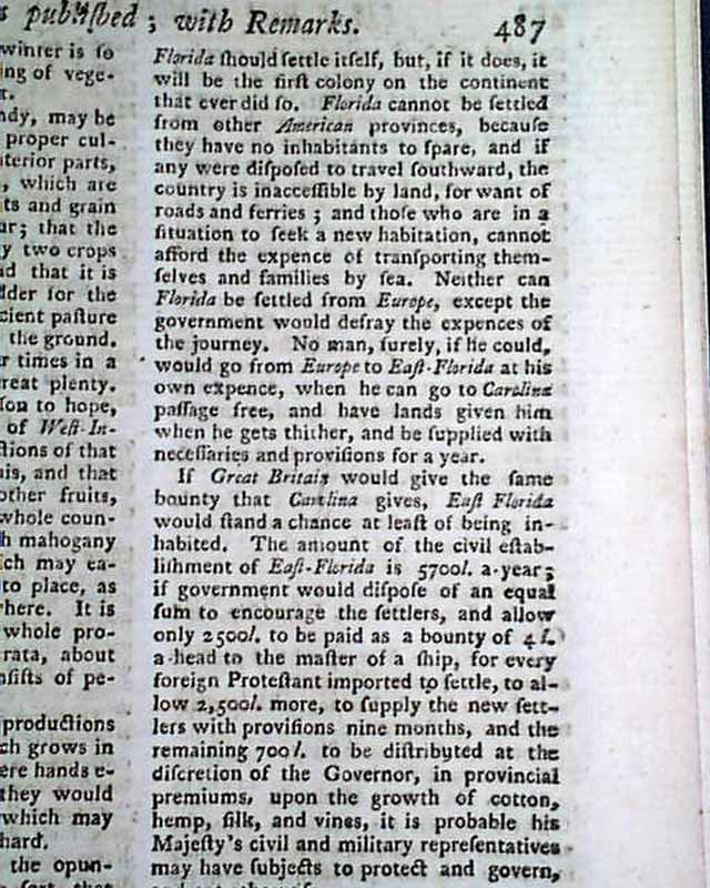 1766 Pre REVOLUTIONARY WAR Magazine East Florida...