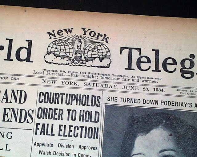 NEW YORK WORLD TELEGRAM, NYC, June 23, 1934.