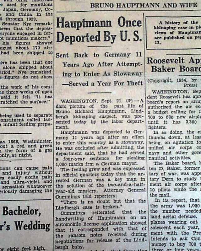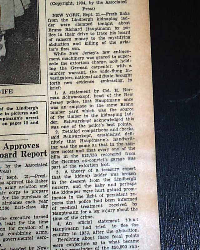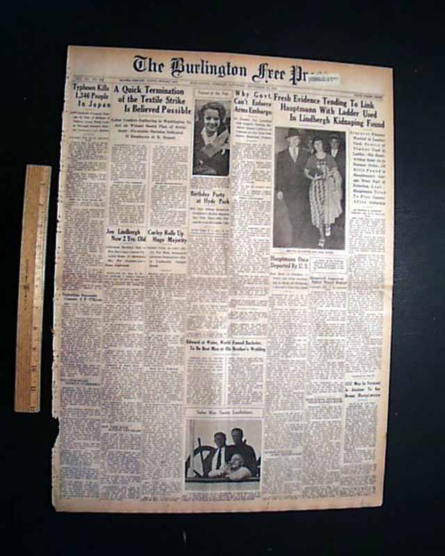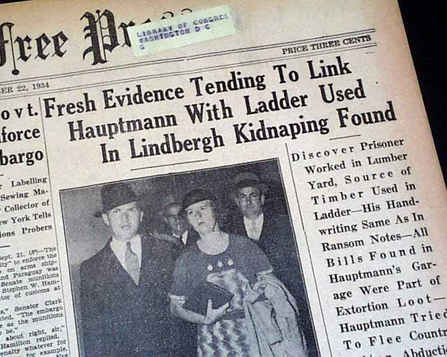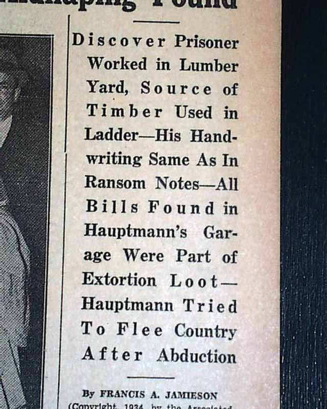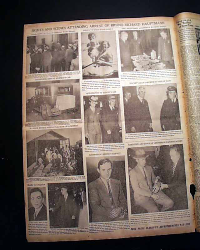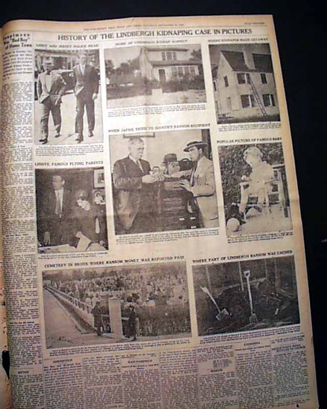 This 18 page newspaper has a three column headline on the front page: "Fresh Evidence Tending To Link Hauptmann With Ladder Used In Lindbergh Kidnaping Found" with subheads and related Photo. Two full page pictorials inside. (see)