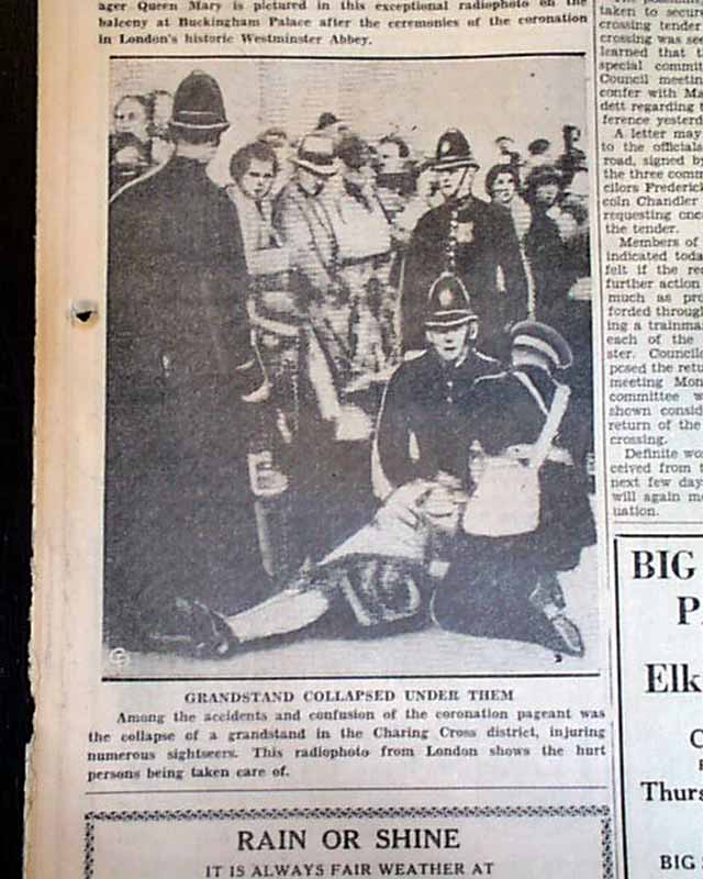 This 12 page newspaper has three, two column photos on the front page with caption: "CAMERA RECORD OF HIGH LIGHTS AT CORONATION". (see) More related photos inside.