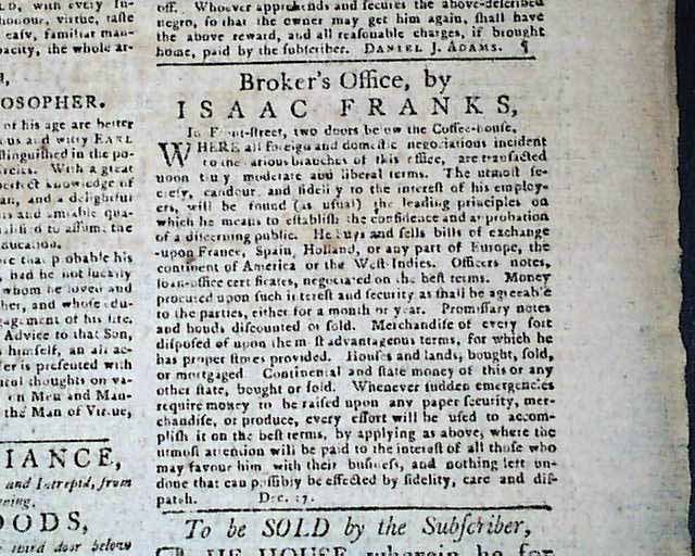Page 3 has a nice had headed: "Broker's Office by ISAAC FRANKS..." with much detail. Franks was a noted Jewish financier & served under Washington during the Revolutionary War.
