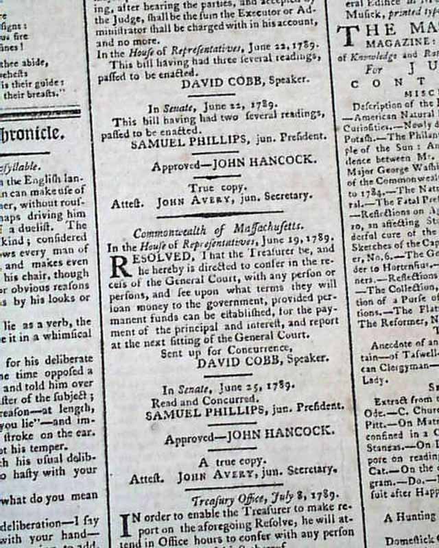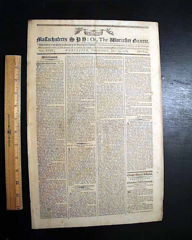 THOMAS'S MASSACHUSETTS SPY OR THE WORCESTER GAZETTE, July 23, 1789