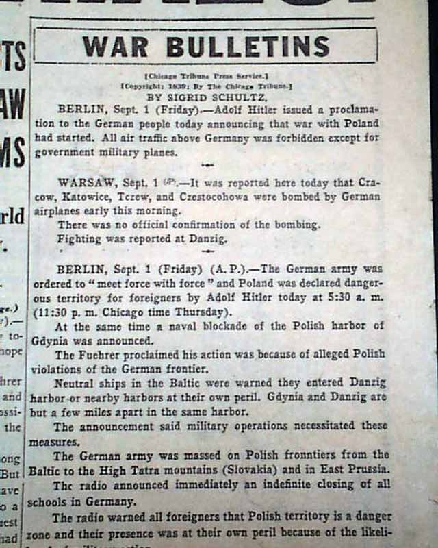CHICAGO DAILY TRIBUNE, Sept. 1, 1939