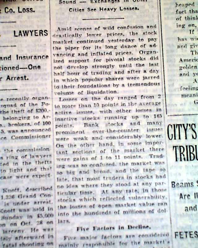 Terrific to have an issue of the Times from the end of October. Just 2 days later a major collapse of the market would be called "Black Thursday".