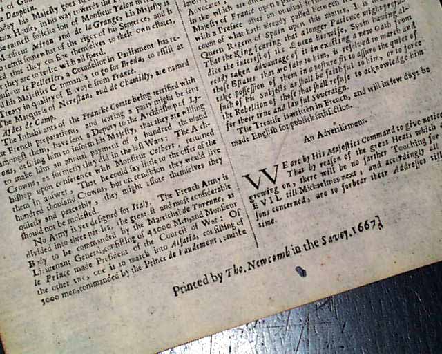 Click image to enlarge Genuine London Gazette newspaper from 1667...