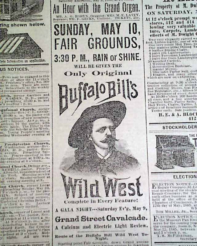 Page 5 has a column-wide ad for: "Buffalo Bill's Wild West" show which includes a likeness of Buffalo Bill Cody.