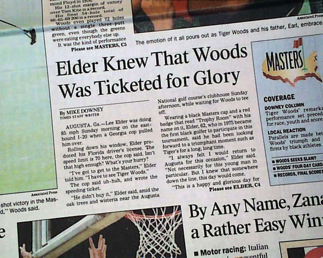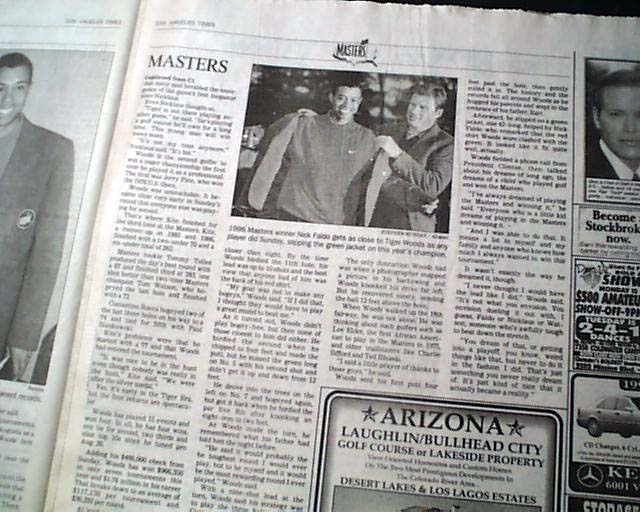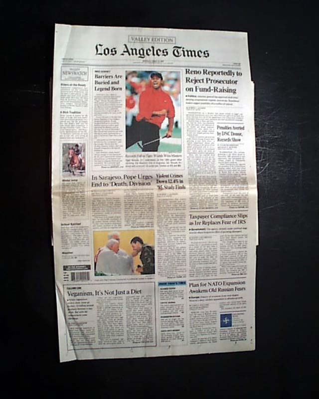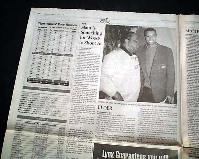 The complete newspaper with all sections and in nice condition. Great to have in this Los Angeles newspaper as Tiger was born in Southern California.