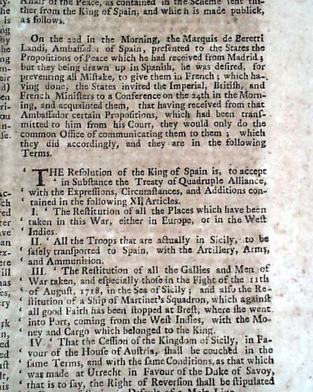 Click image to enlarge Details of an encounter with pirates...   Treaty of Quadruple Alliance...