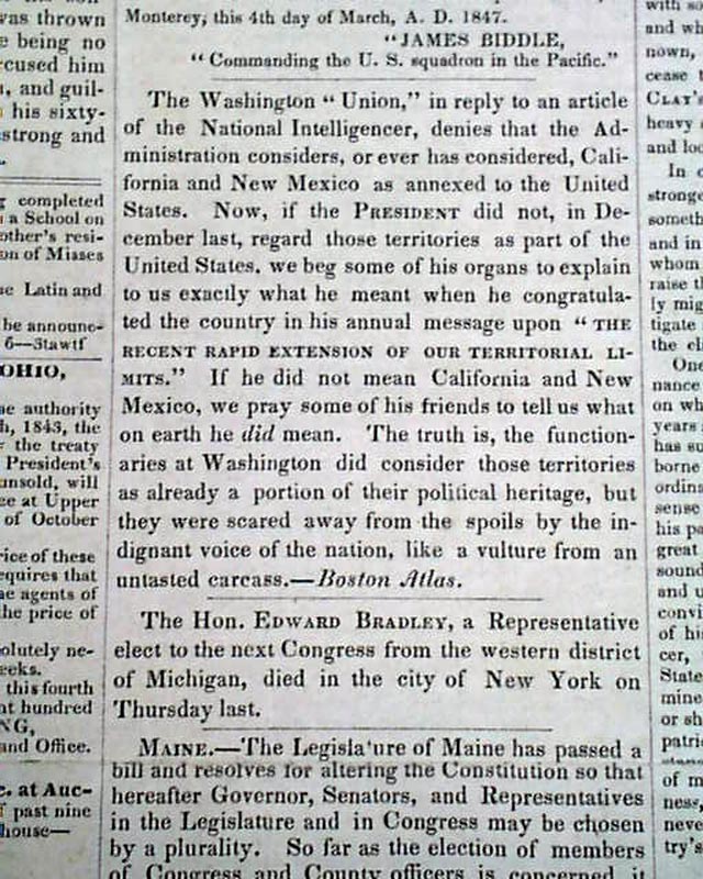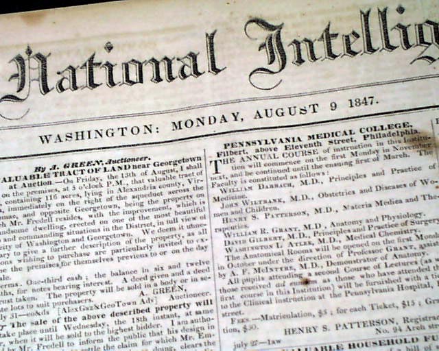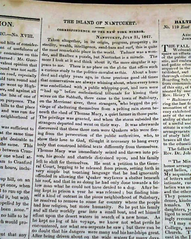 DAILY NATIONAL INTELLIGENCER, Washington, D.C., Aug. 9, 1847 Page 2 has over half a column on: "Miles's Route To the Pacific". Also most of a column is taken up with: "The Island of Nantucket" which is very descriptive.