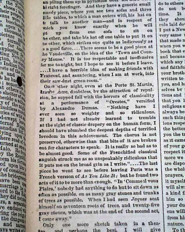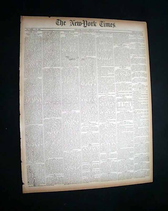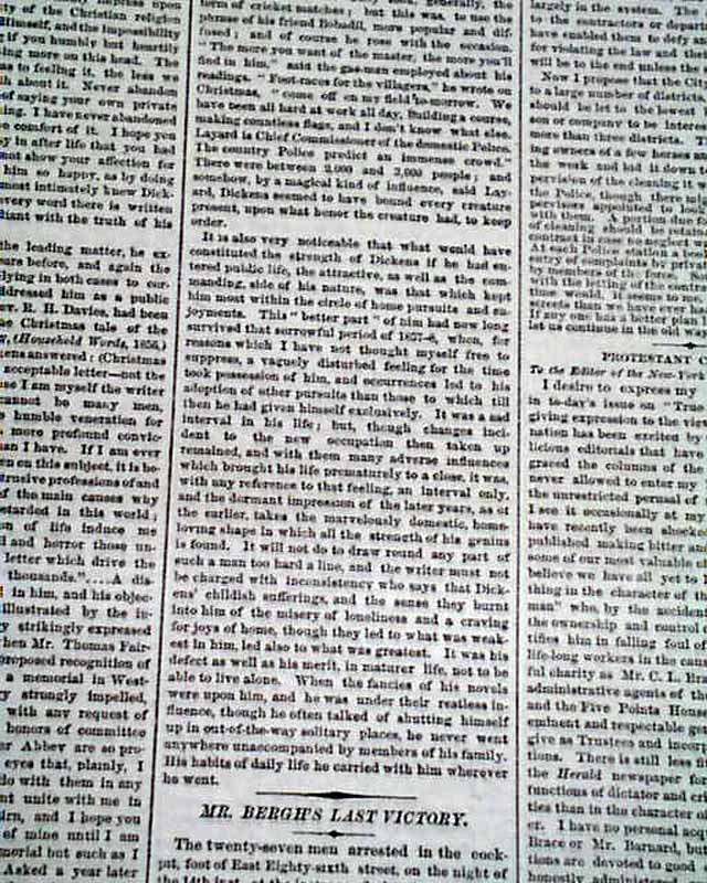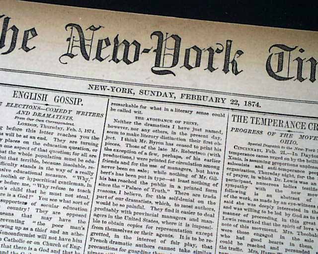 NEW YORK TIMES, Feb. 22, 1874  Page 3 has 2 1/2 columns taken up with: "CHARLES DICKENS" "Further Extracts From Mr. Forster's Biography" containing a wealth of interesting content on this notable writer.