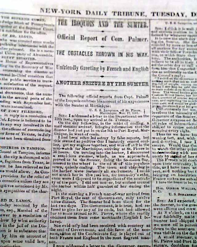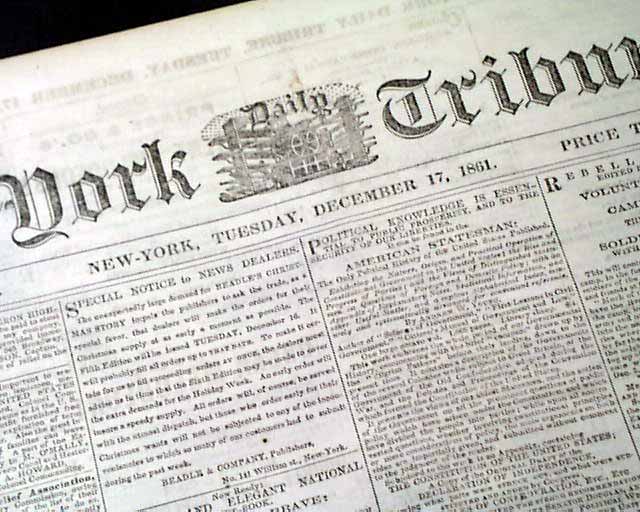 NEW YORK TRIBUNE, Dec. 17, 1861 The format of this title at this time was advertisements on the front page with the wealth of Civil War reporting on inside pages.