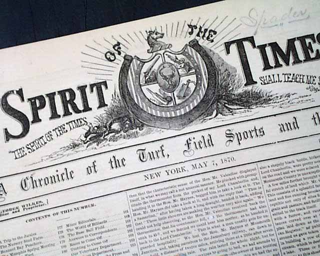 SPIRIT OF THE TIMES, New York, May 7, 1870  It is subtitled in the masthead: "A Chronicle of the Turf, Field Sports, and the Stage".
