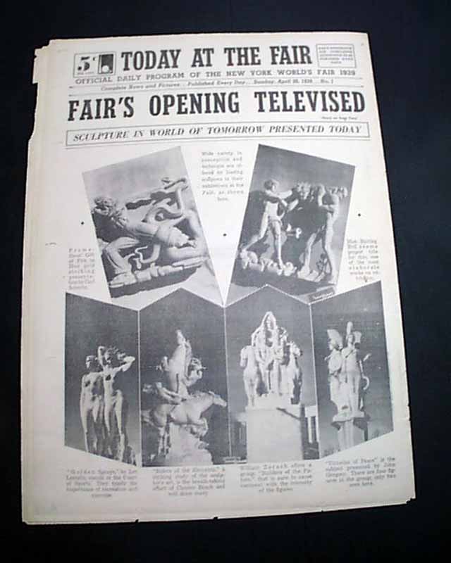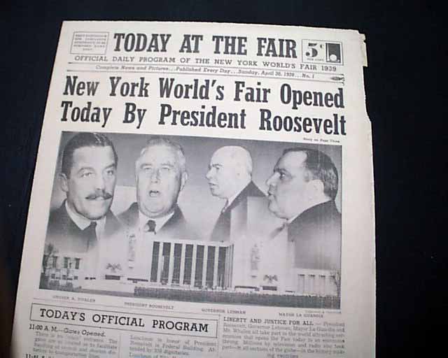 TODAY AT THE FAIR, "Official Daily Program Of The New York World's Fair 1939", April 30, 1939  This is the first issue of a "newspaper" which existed only for the life of the Fair.