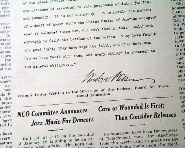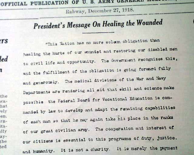 This issue was published just after the end of the war, with various recovery-related articles including on the front page: "President's Message On Healing the Wounded" signed by Woodrow Wilson.