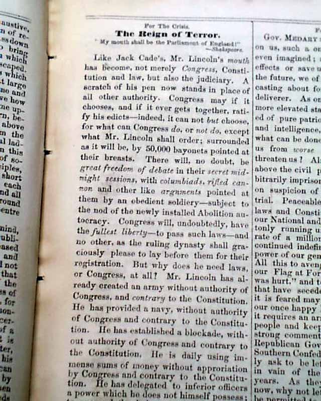 Described as "The Hottest Rebel Sheet to be found in the North or the South", this newspaper opposed the war and attracted the hatred of the Republicans and the Lincoln administration. It was denied circulation in some cities. In 1863 the press was raided by a hateful mob.