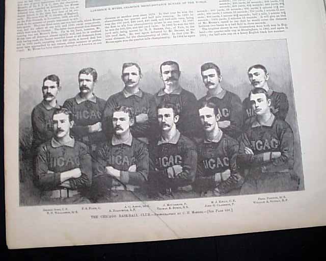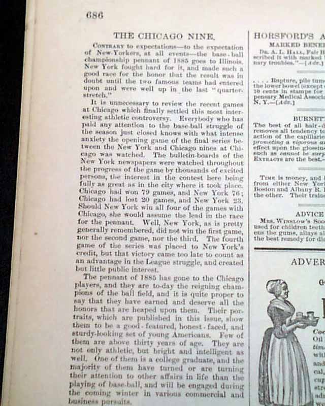 HARPER'S WEEKLY, New York, October 17, 1885 An issue with many nice prints, but perhaps the most sought after would be the nearly half page print of: "The Chicago Base-Ball Club" showing all team members, with their names in the caption, in full baseball uniform. Hall of Famer Cap Anson is among those shown. There is a related article on a following page.