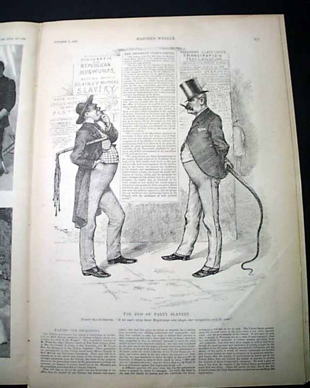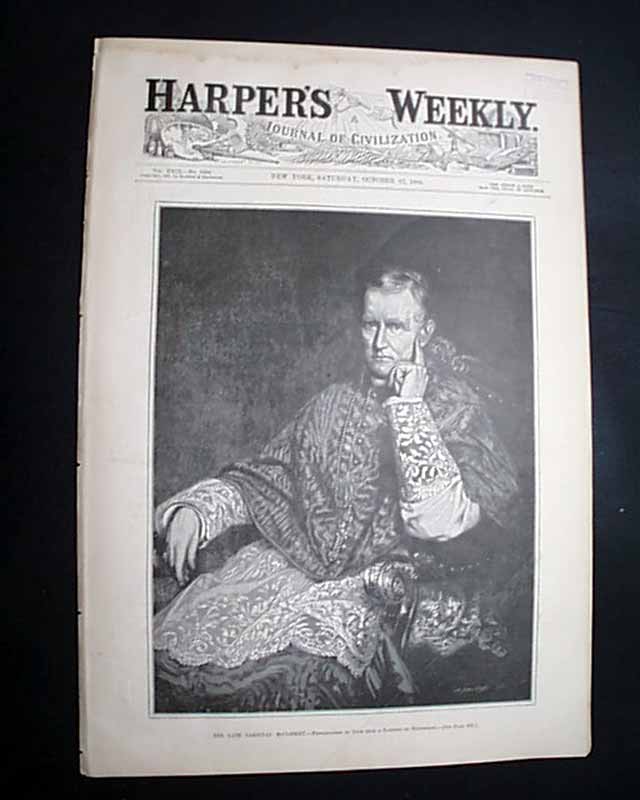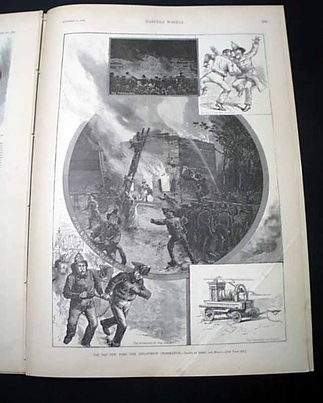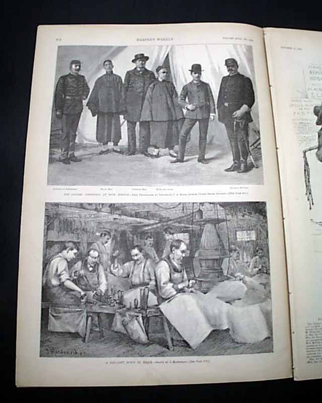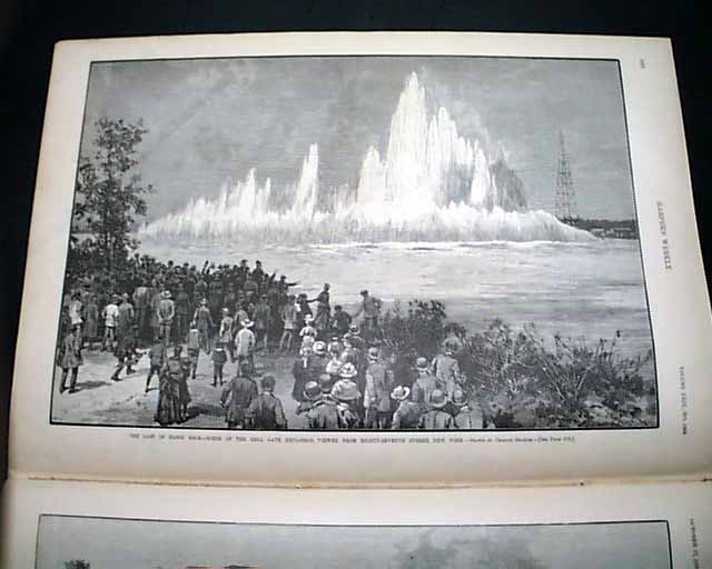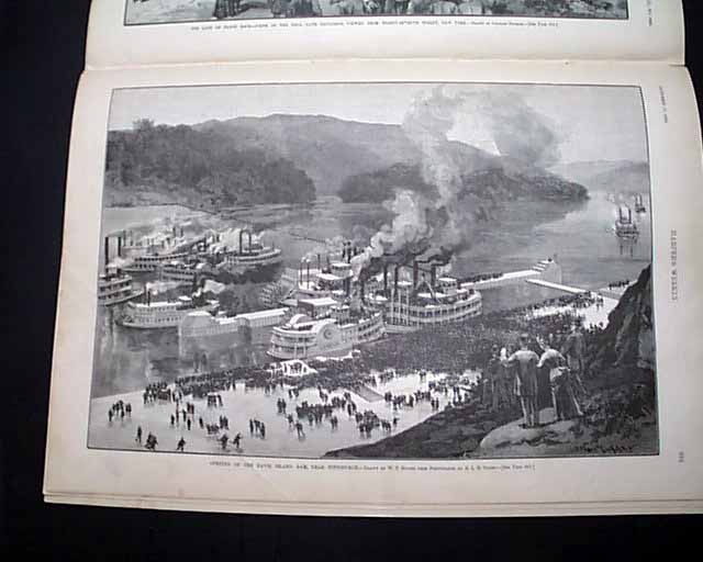 Other nice prints include a full front page: "The Late Cardinal McCloskey"; "A Sail-Loft Down in Maine" showing sail making; "The Chinese Commission at Rock Springs"; a full page of "The Last of Flood Rock--Scene of the Hell Gate Explosion..." a nice full page: "Opening of the Davis Island Dam, Near Pittsburgh" which shows eight paddle wheelers; and a full page montage of: "The Old New York Fire Department Celebration".