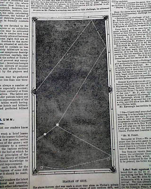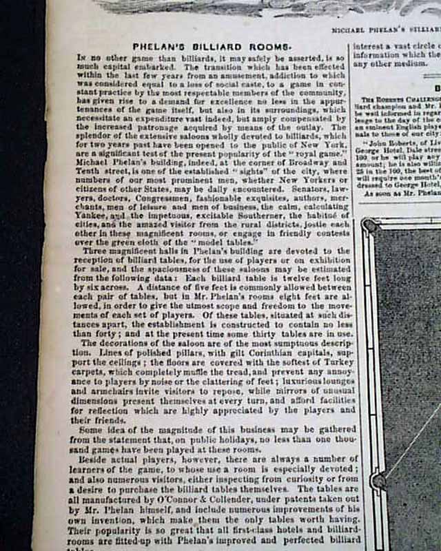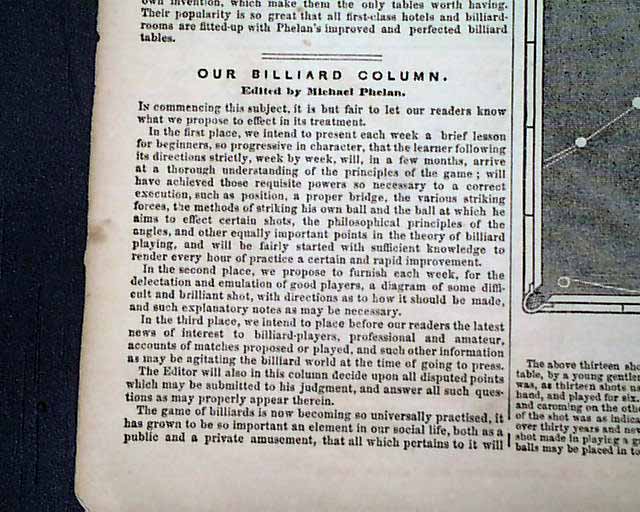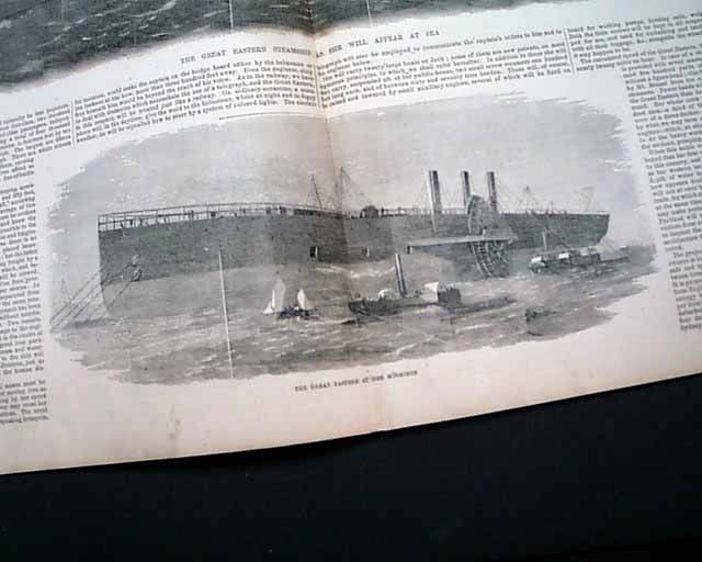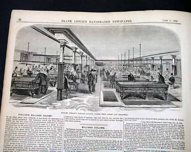 LESLIE'S ILLUSTRATED, New York, Jan. 1, 1859  Inside has a print of: "Michael Phelan's Billiard Saloons..." and a: "Diagram of Shot" in billiards. The centerfold has a nice print of: "The Great Eastern Steamship As She Will Appear At Sea" with another small print of it. Lengthy article as well.