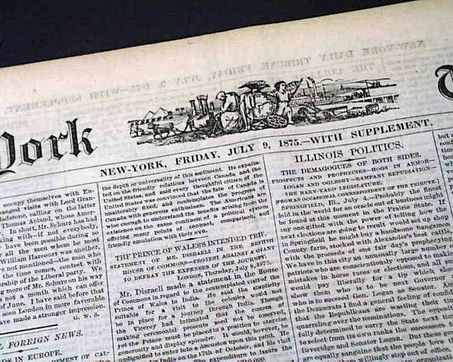 NEW YORK TRIBUNE, July 9, 1875 Page 3 has: "The Black Hills" "The Treaty With the Sioux" "How the Indians Were Persuaded to Make the Treaty--Wisdom of Their Action in Saying Cattle". This is followed by: "Character of the Country" "General Diffusion of Small Quantities of Gold Over a Large Area--One-Third of the Hills Covered with Heavy Timber--The Soil Rich & Deep".