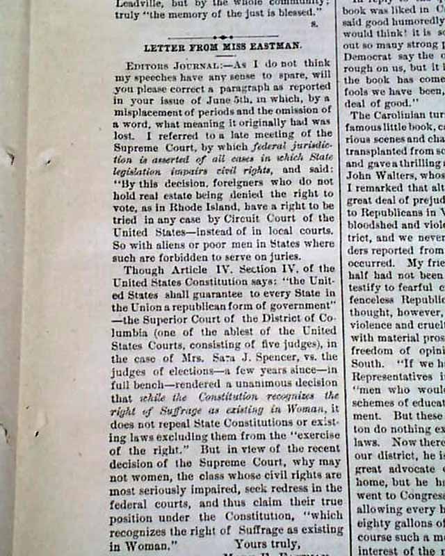 Uncommon 19h century women's suffrage newspaper...