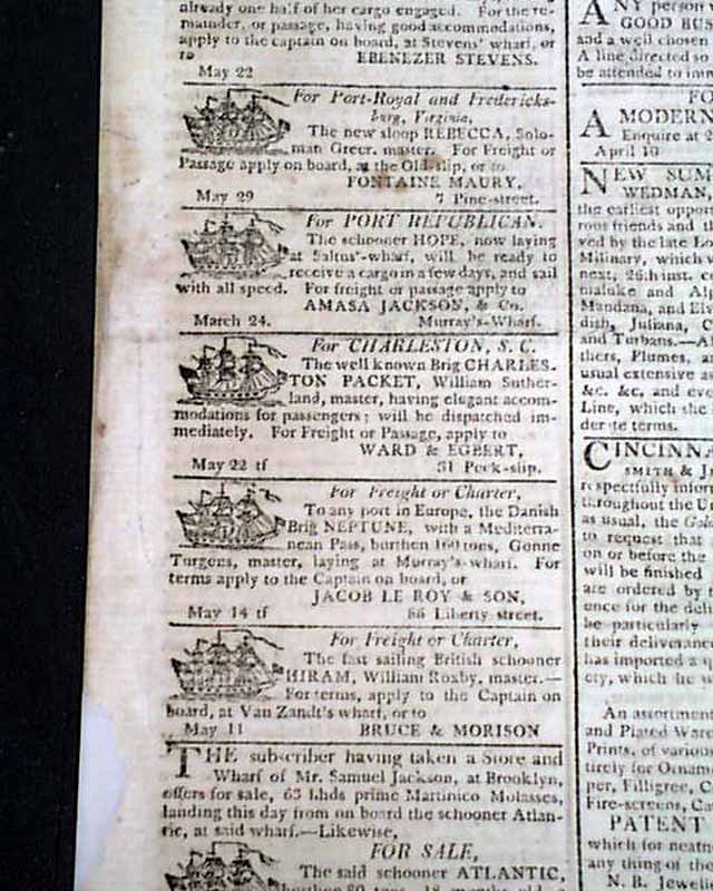 The front page is taken up with advertisements, 17 of which are illustrated ship ads. Various news items of the day from Jefferson's administration.