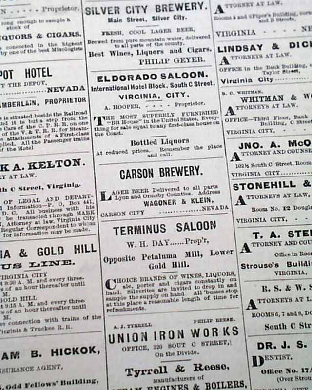 This newspaper would move to Dayton, Nevada in 1880. The content is much as would be expected of a mining town newspaper.