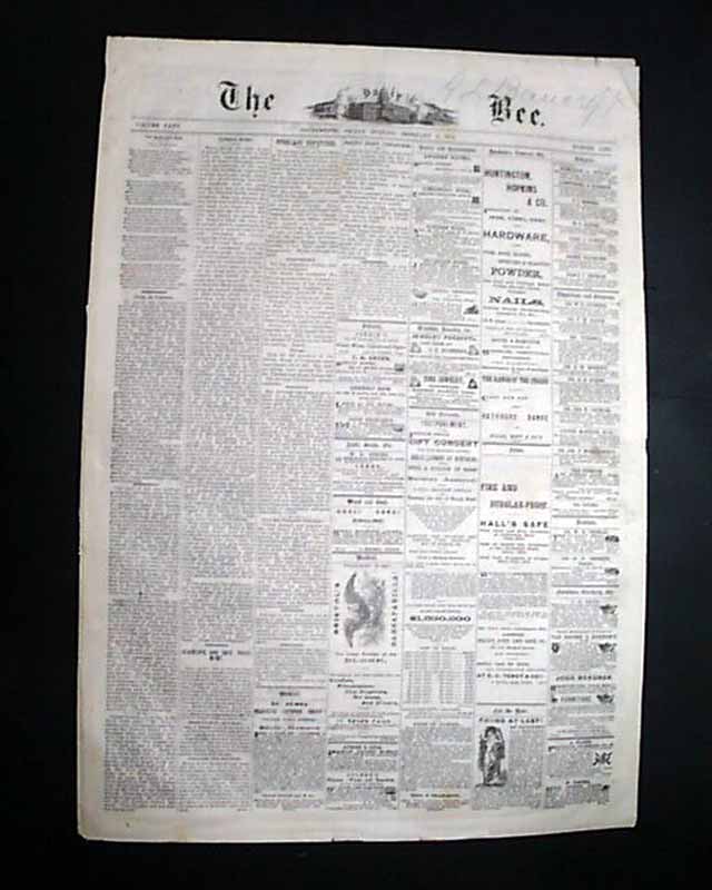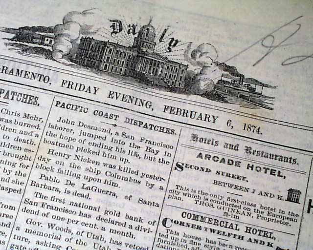 THE DAILY BEE, Sacramento, California, Feb. 6, 1874  This is one of the more successful and long-running newspapers on the West Coast, having begun in 1857 and still publishing today.