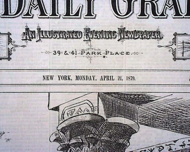 THE DAILY GRAPHIC, New York, April 21, 1879 A great issue for framing and displaying! "Another Exodus - Home Rule in Egypt" "The Zulu War" "The Wreck of the French Floating Battery Arrogante in the Bay of Badine, Island of Hyeres" "View of Wabash Avenue, Chicago, Ill, Looking North From Madison Street" "The New Custom House and Post-Office, Chicago, Ill." "The Chicago Club House" "Preparations for the Spring Season"