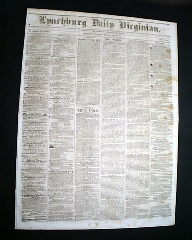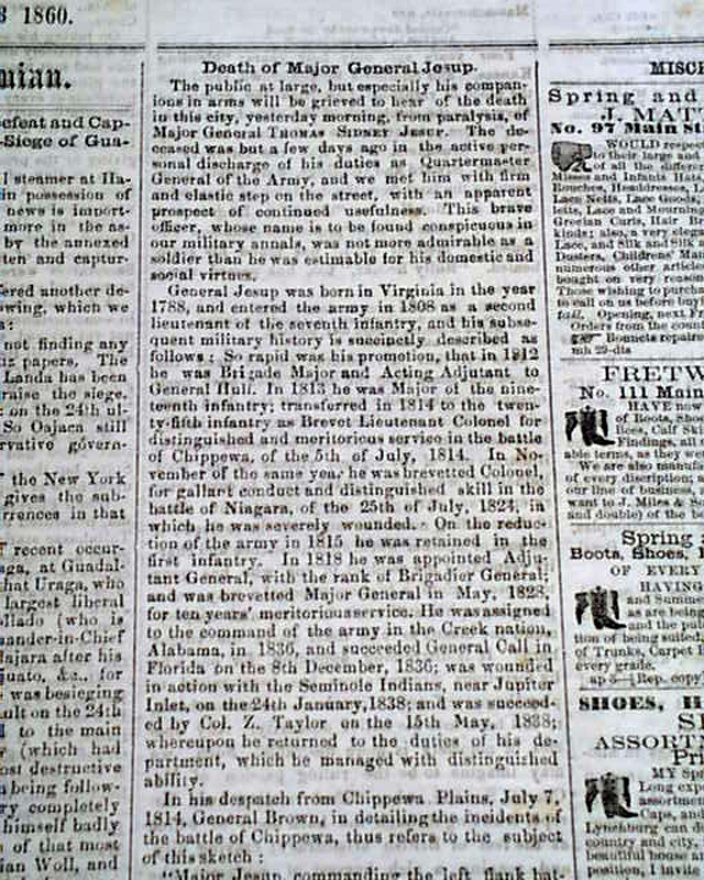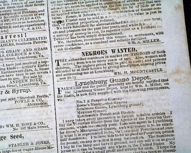 LYNCHBURG DAILY VIRGINIAN, June 13, 1860 The front page has: "Death of Major General Jessup". Page 3 has a: "Negroes Wanted" advertisement.
