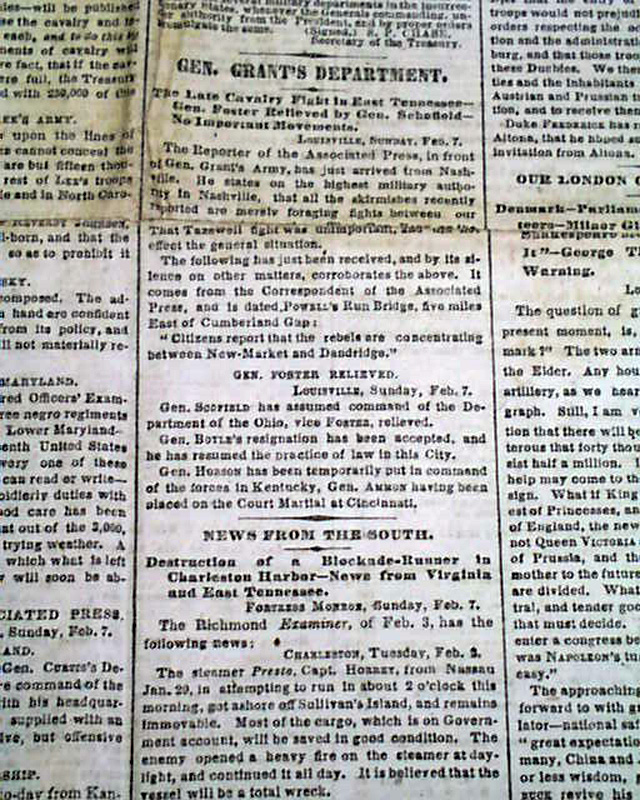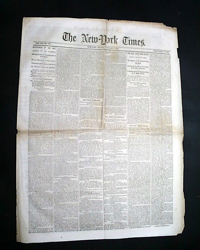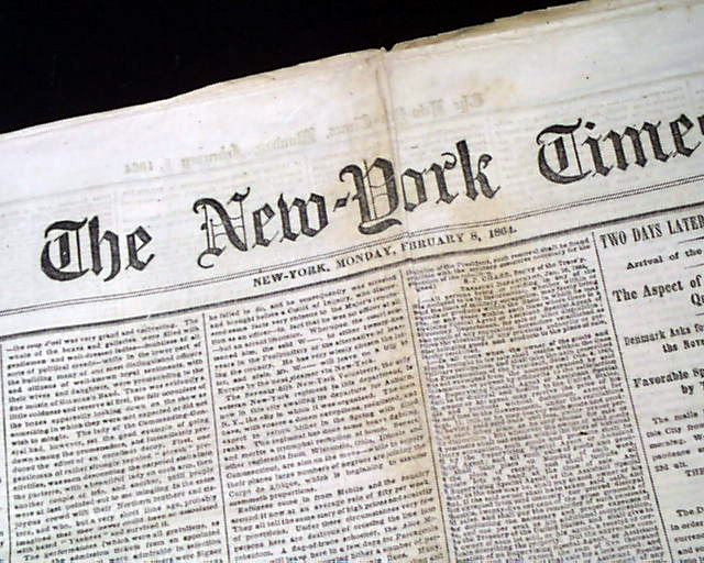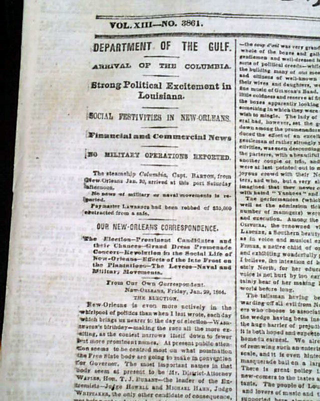 NEW YORK TIMES, Feb. 8, 1864 Among the front page column heads on the Civil War are: "Department Of The Gulf" "Strong Political Excitement in Louisiana" "Social Festivities in New Orleans" "News From Washington" "Gen. Grant's Department".
