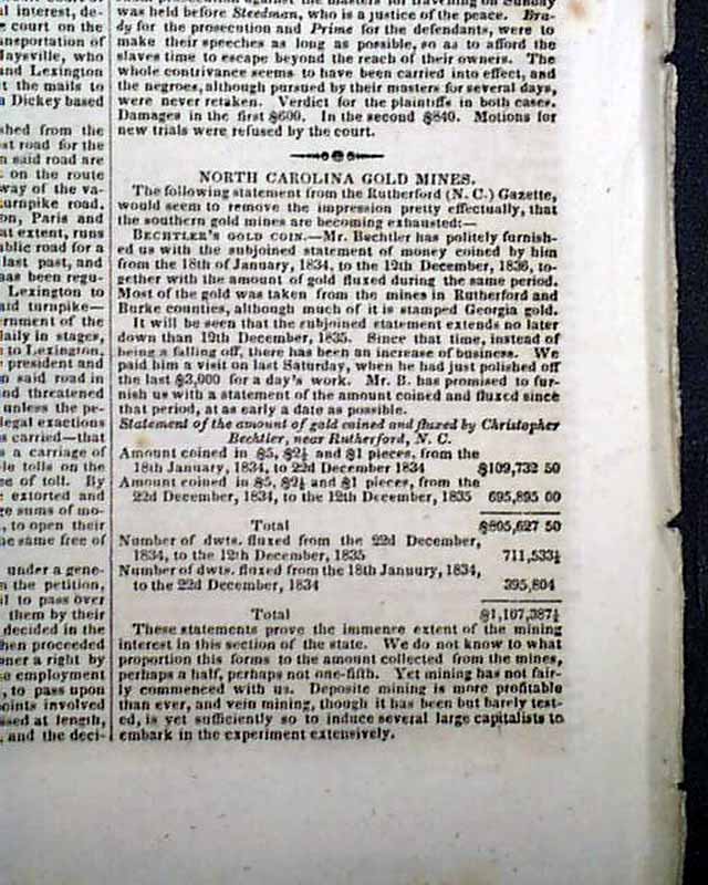 The back page has: "North Carolina Gold Mines" which mentions "Bechtler's Gold Coin" which currently sell for five figures.