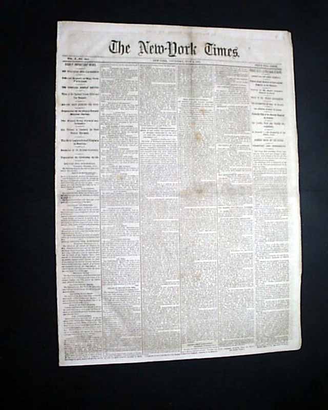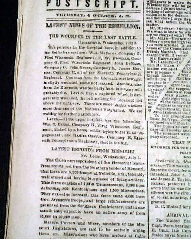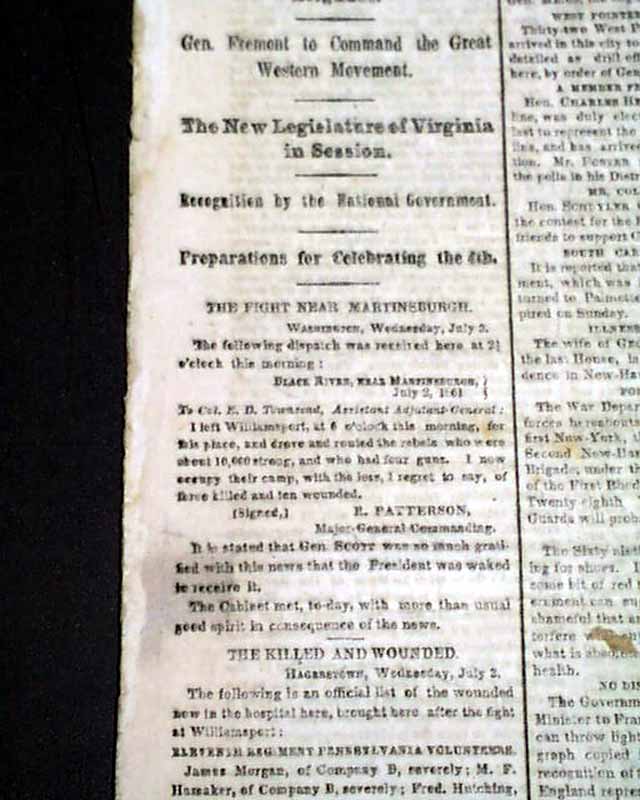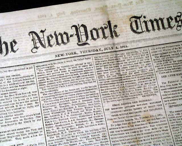 NEW YORK TIMES, July 4, 1861 Among the first column heads on the Civil War are: "The Engagement Near Martinsburgh" "Official Report of Maj.-Gen. Patterson" "10,000 Rebels Routed" "Preparations for the Advance Towards Manassas Junction" "Gen. Fremont to Command the Great Western Movement' & more.