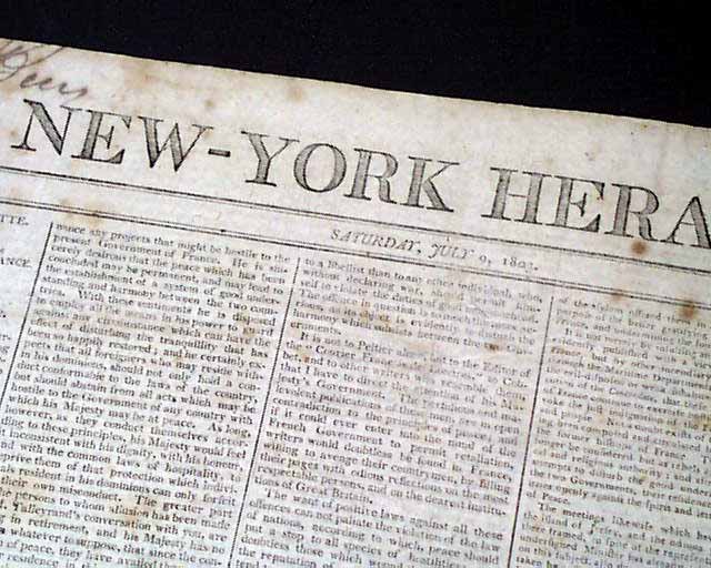 NEW YORK HERALD, July 9, 1803 Pages 2 and 3 contain over a full column on the notable controversy exposed by the scandalmonger James Callender (due to his hatred of Thomas Jefferson), this being the charge against Jefferson that Gabriel Jones had been denied proper repayment for a loan of some years previous.
