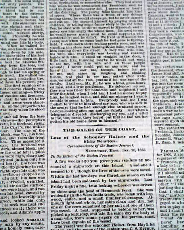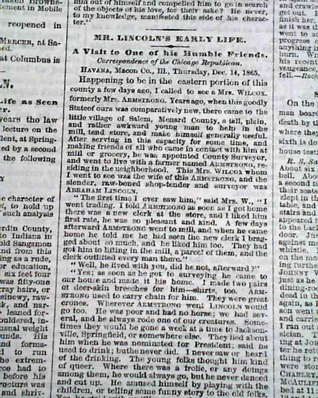 Also on page 3: "Mr. Lincoln's Early Life" "A Visit to One of His Humble Friends". This is another fine article with more about Lincoln's qualities and disposition from his early days. Fascinating reading.