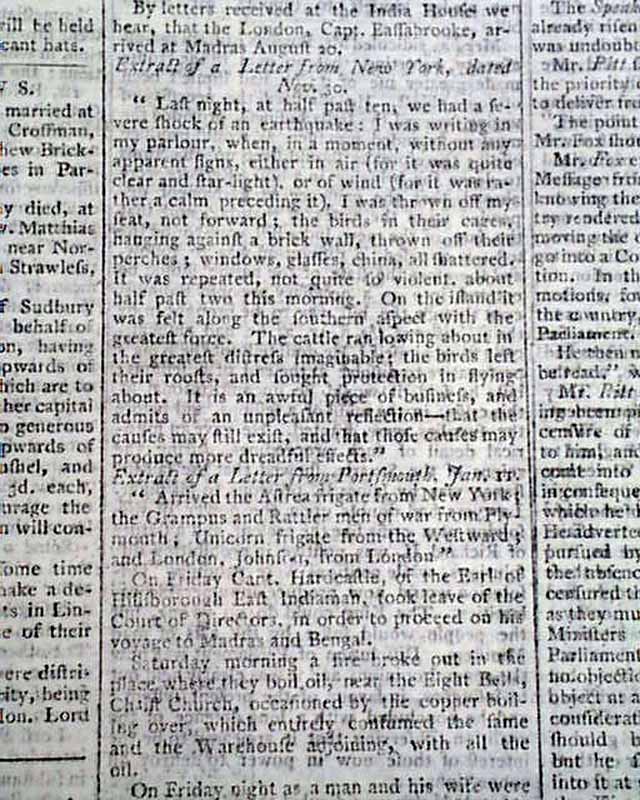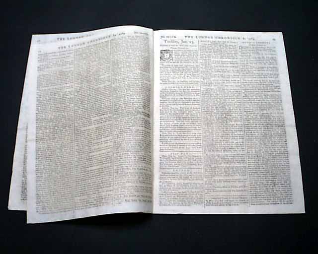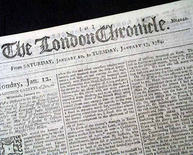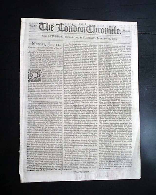 THE LONDON CHRONICLE, England, Jan. 13, 1784 The back page has a report noting in part: "There is a party now forming of men...for a tour through the whole continent of North America...The scheme is to travel from Quebec...to the Mississippi which never was yet discovered or laid down, further than the Falls of St. Anthony...turn due West till they meet the Pacific Ocean; after that to follow the coast North East in order to try for the North West Passage...return to the Mississippi & go down that river to New Orleans...up the Ohio...enter Georgia by the back frontier & then travel through all the peopled territories of the United States..." with much more.