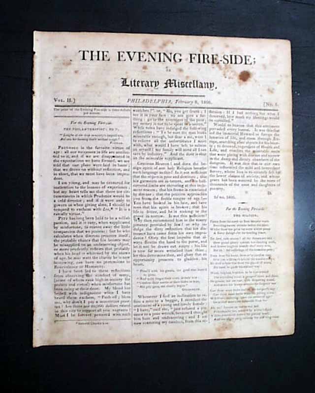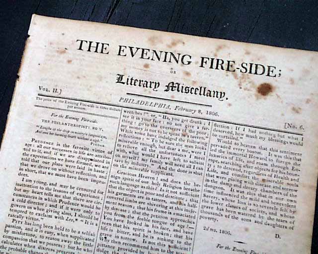 THE EVENING FIRESIDE, Philadelphia, Feb. 8, 1806  This was a short-lived paper existing only from December, 1804 thru December, 1806.
