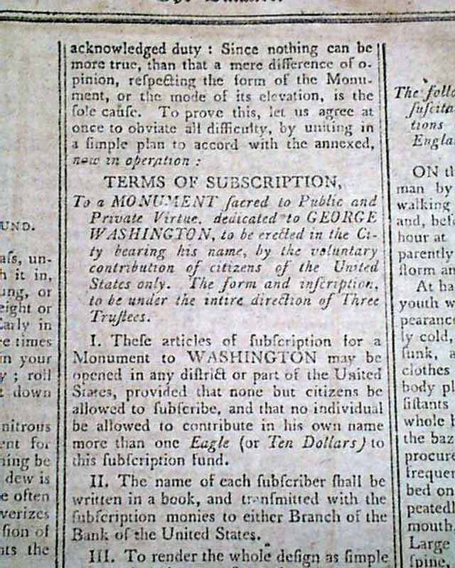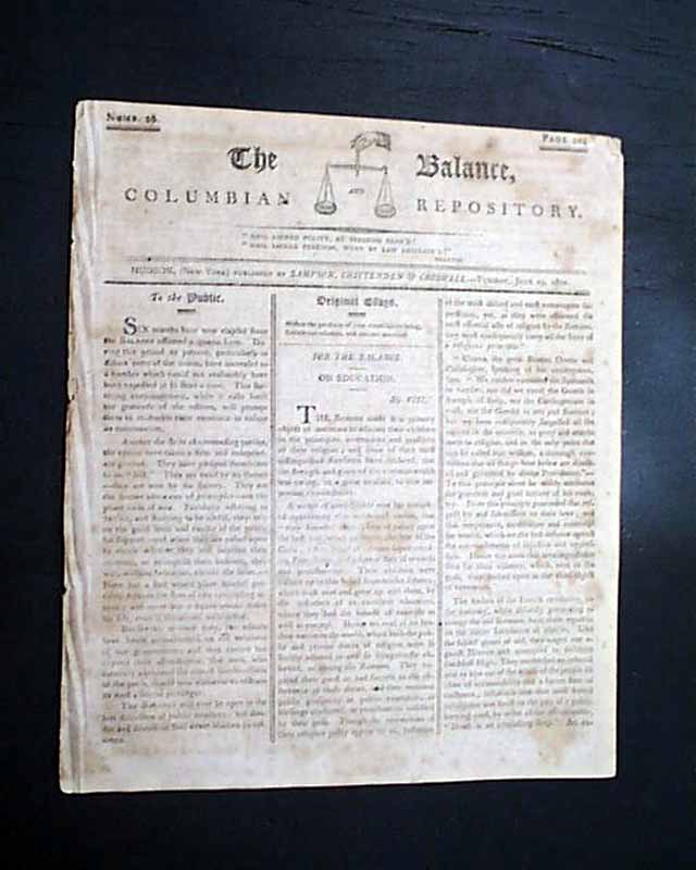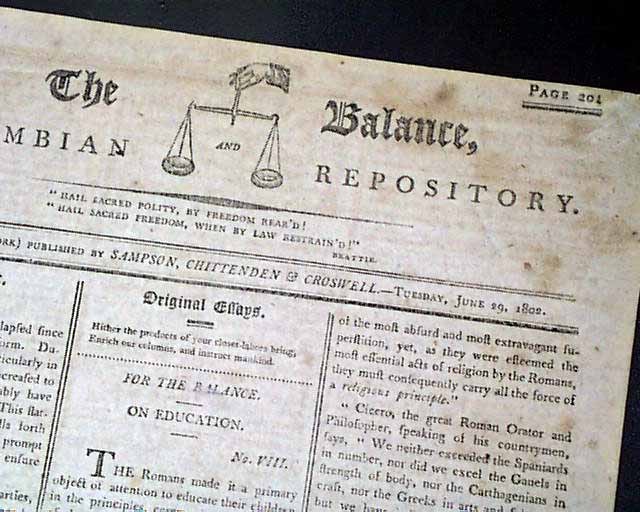 THE BALANCE & COLUMBIAN REPOSITORY, Hudson, New York, June 29, 1802 Fully half of page 5 is taken up with a detailed: "Tribute" to the: "Memory of Washington" which includes details on efforts to raise money for a proper monument to George Washington.