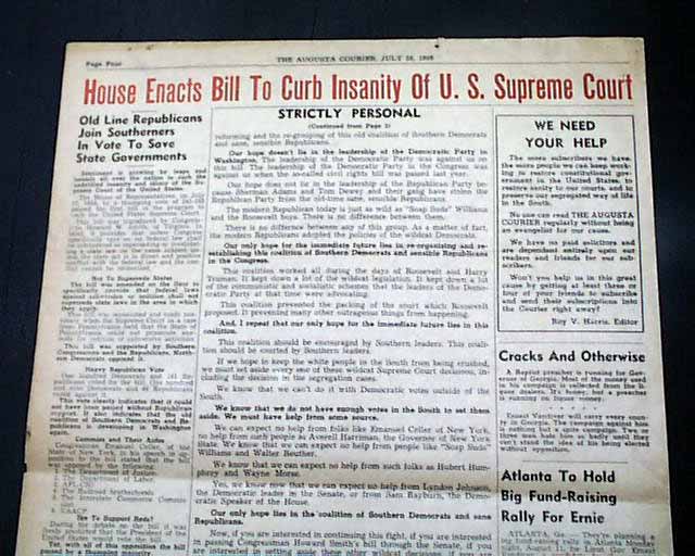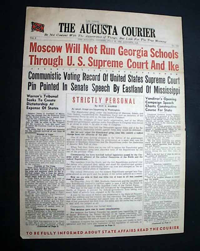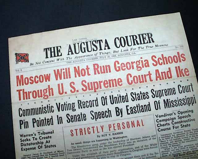 THE AUGUSTA COURIER, Georgia, July 23, 1958 This was an openly racist newspaper, with a print of the Confederate flag in the masthead & almost all content has anti-Black sentiments.