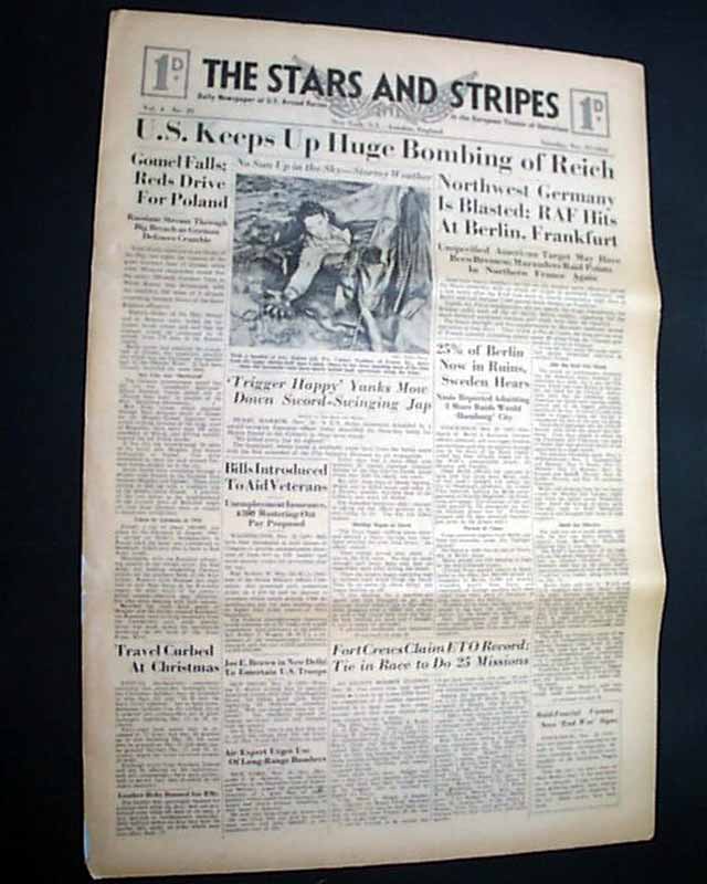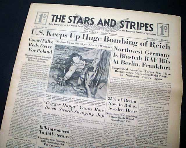 THE STARS &  STRIPES, the New York & London edition, Nov. 27, 1943  In the masthead is: "Daily Newspaper of U.S. Armed Forces in the European Theater of Operations".