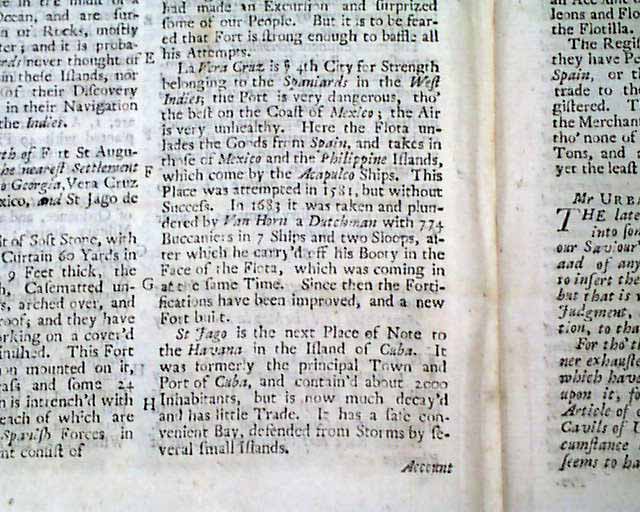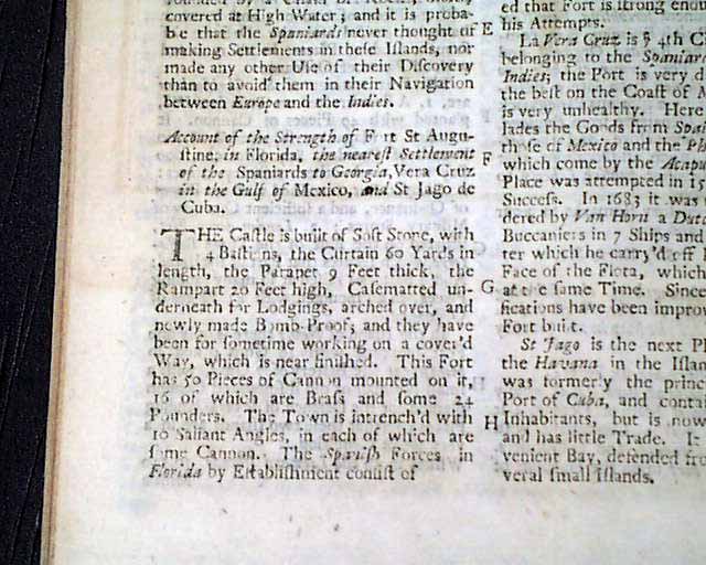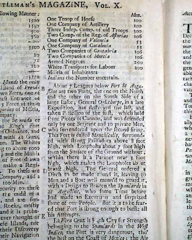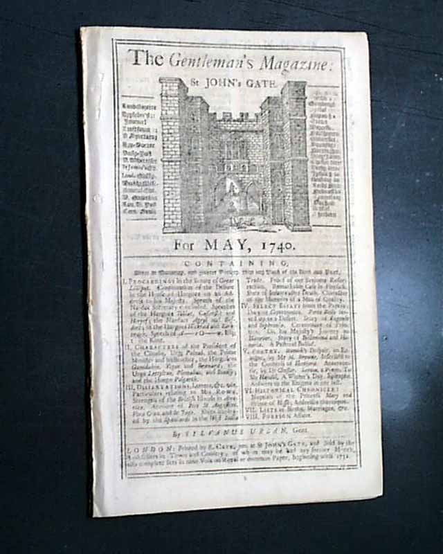 THE GENTLEMAN'S MAGAZINE, London, May, 1740 Inside has an article headed: "Account of the Strength of Fort St. Augustine in Florida, the Nearest Settlement of the Spaniards to Georgia, Vera Cruz, in the Gulf of Mexico, and St. Jago de Cuba." which mentions James Oglethorpe.