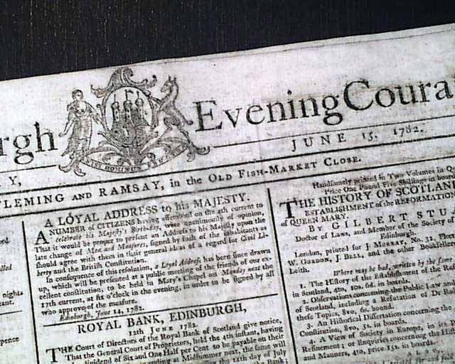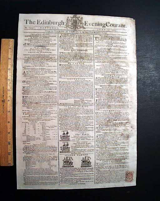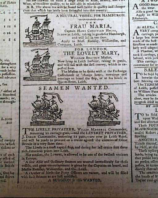 THE EDINBURGH EVENING COURANT, Edinburgh, Scotland, June 15, 1782 The front page of this issue has an interesting notice headed: “Seaman Wanted" to serve on two privateer ships.