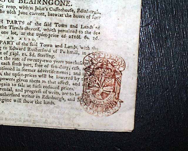 Very unusual to have two ship engravings in a single notice, and very uncommon to have a mention of American ships being captured in the ad. Nice to have on the front page, from the waning days of the Revolutionary War. Front page also has a red-inked tax stamp in the lower right corner.