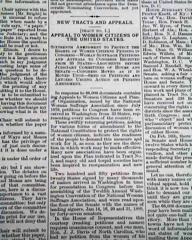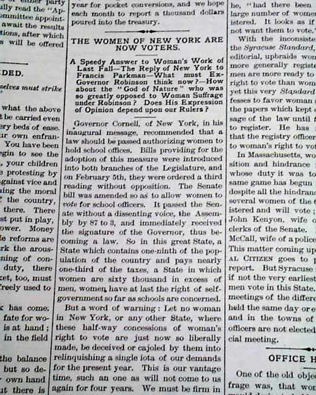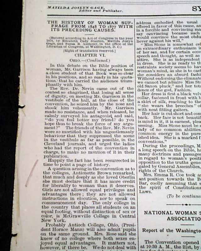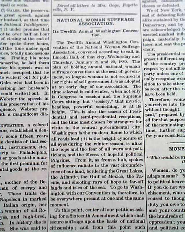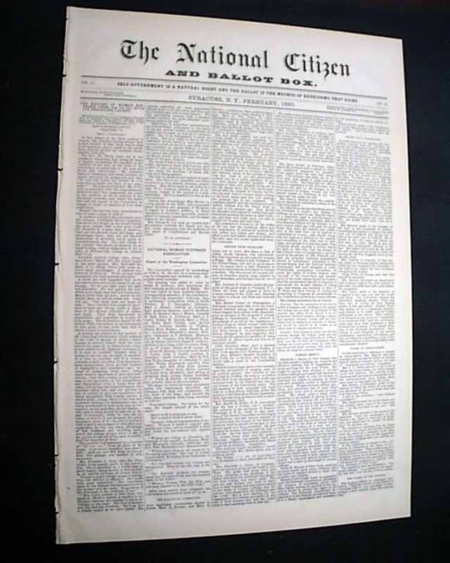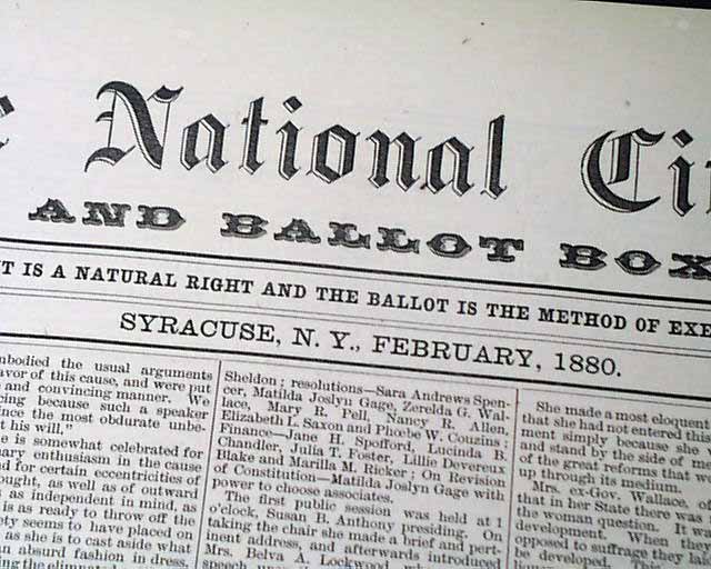 THE NATIONAL CITIZEN & BALLOT BOX, Syracuse, New York, February, 1880 A quite rare women's suffrage newspaper which lasted just two years under this title. It is mentioned in Mott's History of American Magazines.