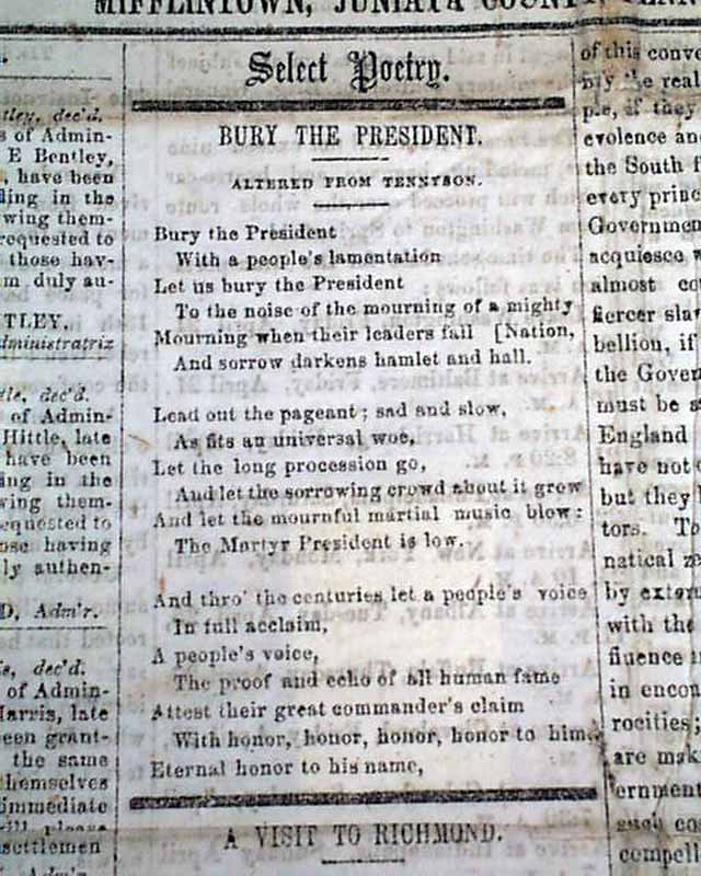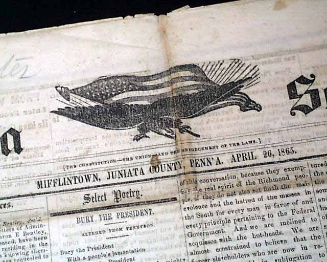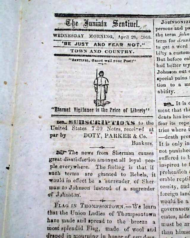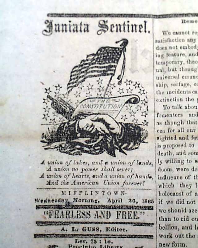 JUNIATA SENTINEL, Mifflintown, Pennsylvania, April 26, 1865