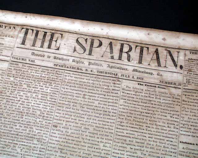 THE SPARTAN, Spartanburg, South Carolina, July 3, 1851