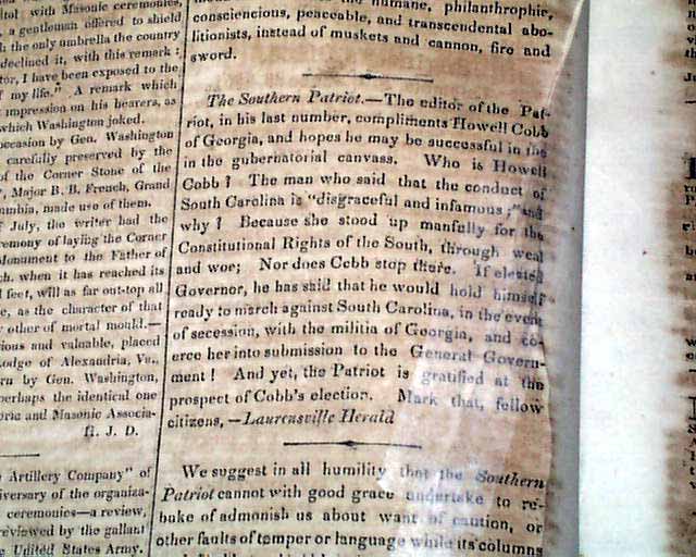 This is a very rare title from the South. Gregory's "Union List of American Newspapers" notes that only 12 issues (1 is 20th century) are recorded in just 6 American institutions, 3 of which have but a single issue.