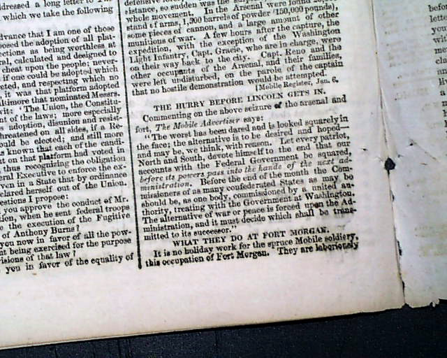 Events just prior to the outbreak of war... Florida and Alabama leave the Union...