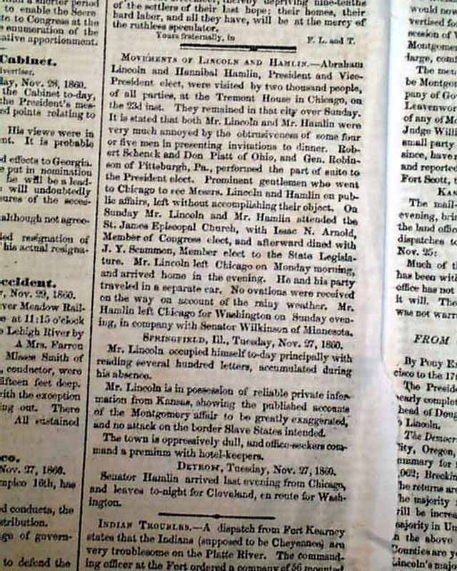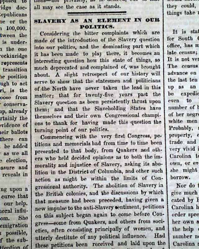Click image to enlarge Lincoln & Hamlin... Slavery a political issue... Reports on secession from the Union...