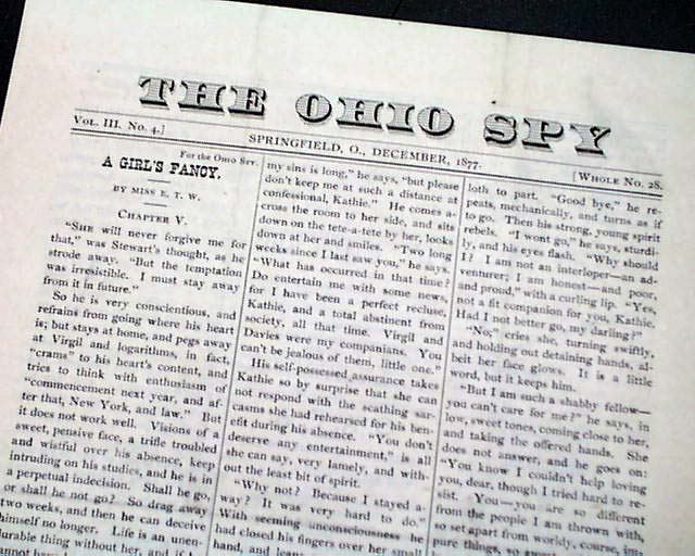 THE OHIO SPY, Springfield, December, 1877 This is a product of the amateur press, an avocation for amateur printers which was popular in the latter part of the 19th century. They were typically small in size and short-lived.